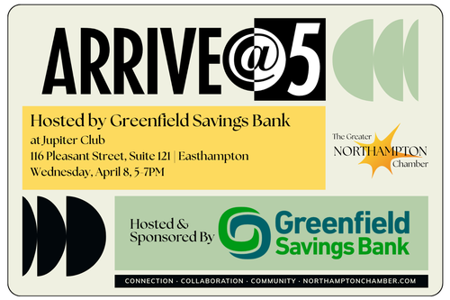 Join us for our monthly networking event, hosted and sponsored this April by Greenfield Savings Bank! We'll gather at the fabulous Jupiter Club in Easthampton for a night of community, networking, and more — you won't want to miss this one!