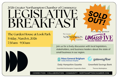 Note: This event has SOLD OUT! We cannot accommodate walk-ins for this event; only ticketed guests are able to attend. Our Second Annual Legislative Breakfast takes place on the morning of Friday, March 6, 2026, at the Garden House at Look Park! This year's event will focus on the state of small business, with input from area legislators and business leaders. We hope you'll join us for an exciting and informative morning!