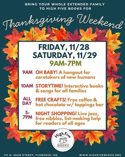 We can’t wait to meet your whole family! Come get cozy at the bookstore with us over the long Thanksgiving weekend with all-day AND evening shopping, crafting, and snacking.